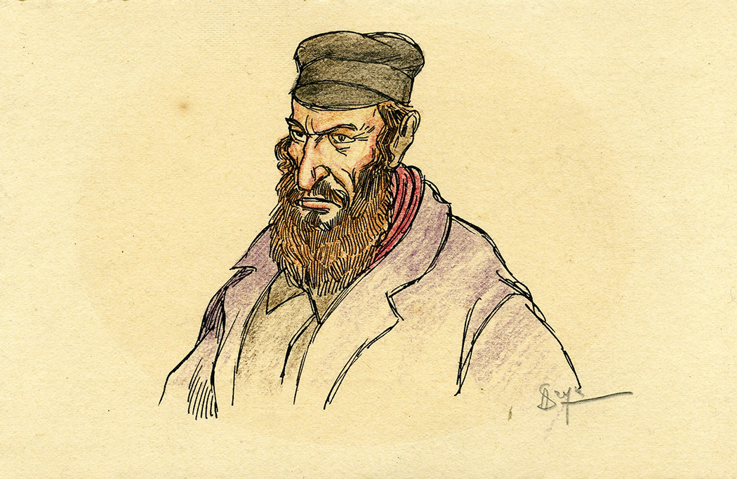 SZYK, Arthur. Working Class Man. Signed “A Szyk”. (Paris, 1912). Colored pencil and ink on paper. Sheet size: 3 1/2″ x 5 3/8″. Image size: 3″ x 3 1/8″. Very Good condition.